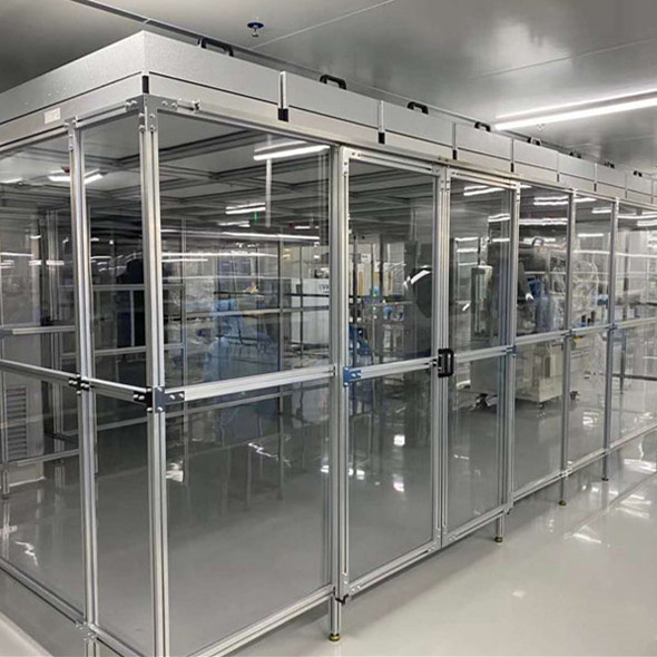 The clean booth adopts industrial aluminum (or stainless steel square pass, iron square pass spray) as the frame, fan filter unit group (FFU) air supply, surrounding glass or tempered glass, and its internal purification level can reach 100-10000. It is suitable for areas with high local purification requirements in the operation area.